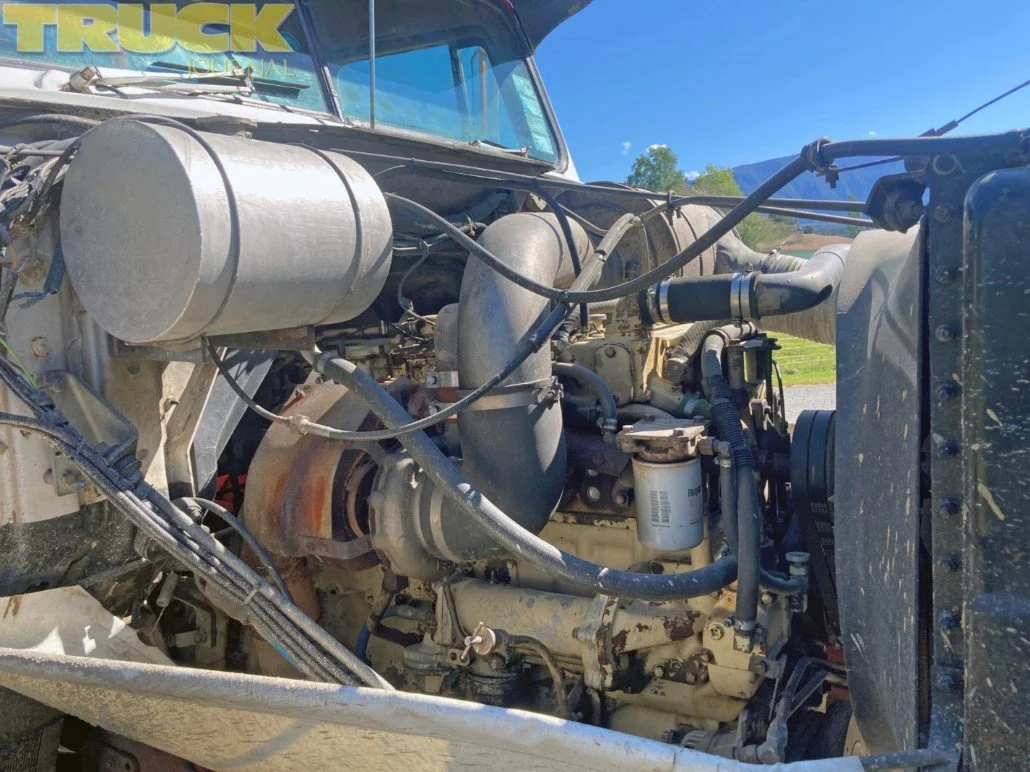The S-Line was a standard International spec of the period with a 350hp Cummins Series 3 Big Cam II engine with 1120 ft/lb of torque nestled under the big hood, a 15 speed Roadranger RTO12515 gearbox and the usual Hendrickson RTE-380 walking beam suspension with Rockwell SSHD heavy duty 44,000lb rear diffs with a 4.11 to 1 ratio.